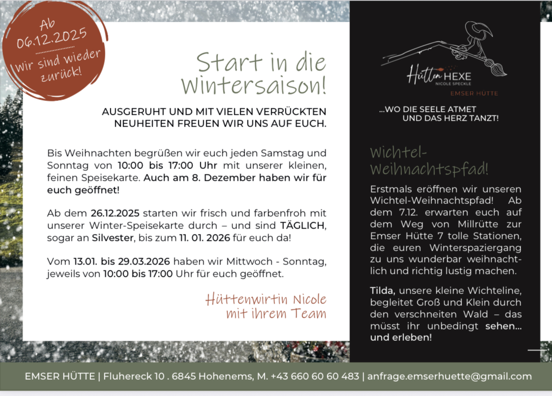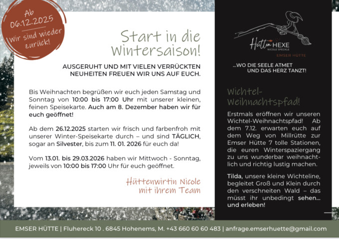 Die Speisekarte kann bei der Hüttenwirtin angefragt werden.